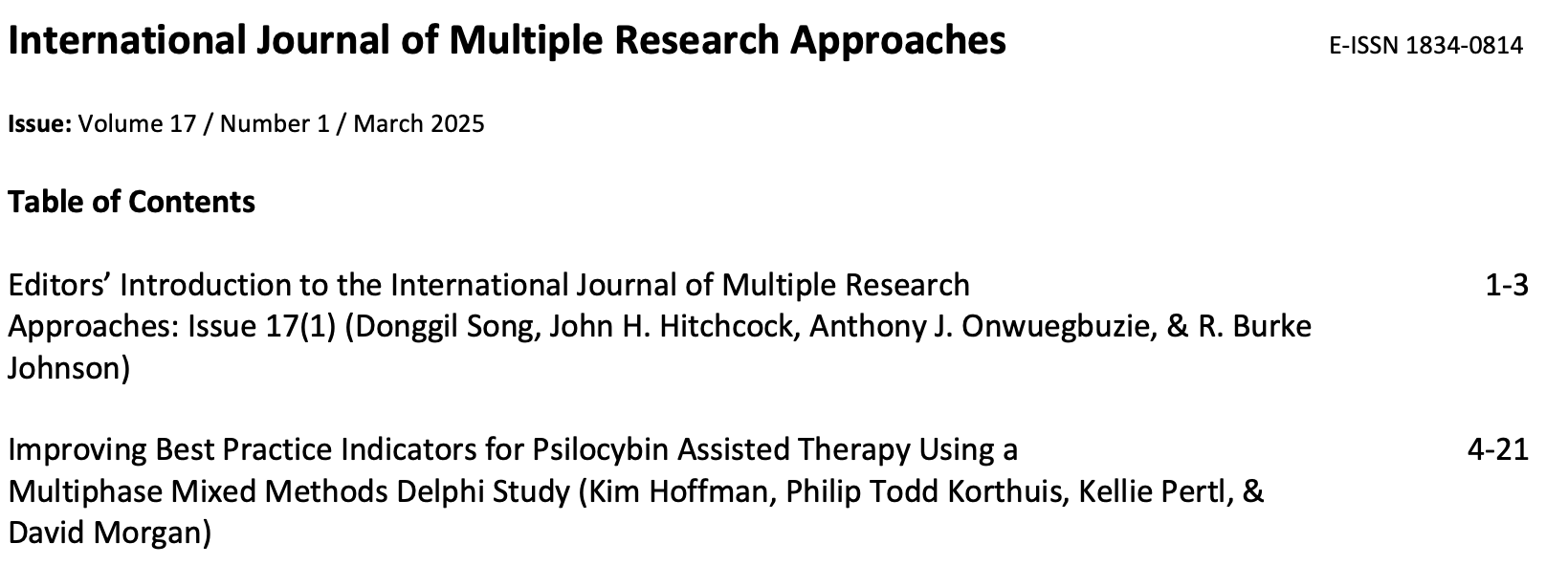 The International Journal of Multiple Research Approaches is indexed with EBSCO and ProQuest.